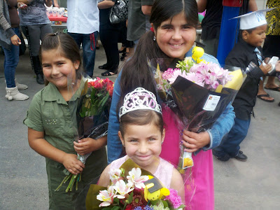 Also, here are some pictures from the last day of school. Mia had a Kindergarten graduation but we got flowers for all 3. Mia is going to 1st grade, Sophia into 2nd and Michelle is going to be a big bad 6th grader. Mia made a cap to wear during the ceremony but you will see that she decided on more appropriate head wear.